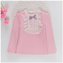 千萌 女童装秋装长袖t恤儿童秋款保暖打底衫蕾丝中大童蕾丝领上衣qm2002